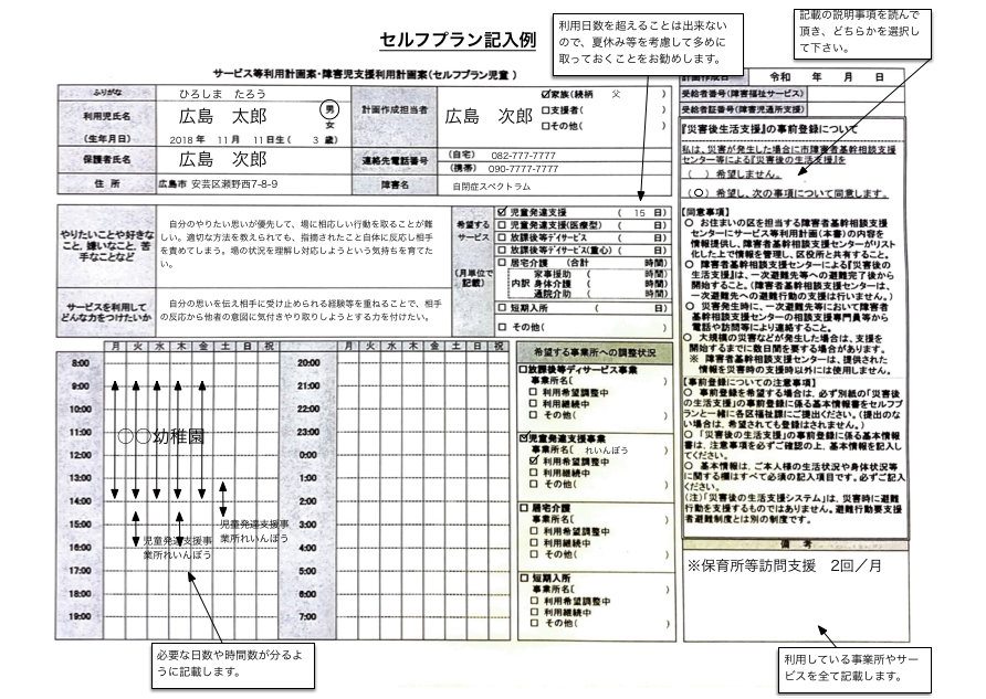 セルフプランの記入例はこちら。